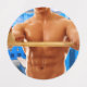SlipperyJoe muscular man abs locker room tiled flooring gay pride gifts LGBTQIA artistic stretched gymnastic tape shirtless defined torso arms sixpack blue lockers wooden bench gym athletic facility grip strength shirtless chest 6-pack