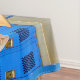 SlipperyJoe muscular man abs locker room tiled flooring gay pride gifts LGBTQIA artistic stretched gymnastic tape shirtless defined torso arms sixpack blue lockers wooden bench gym athletic facility grip strength shirtless chest 6-pack