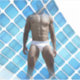 SlipperyJoe muscular man six-pack abs male white underwear grid blue white diamond-shaped tiles modern digital surface background realm artistic abstraction gay pride gifts LGBTQIA flesh and pixels collide unreal dreamscape fusion unique visuals bold design