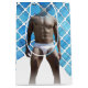 SlipperyJoe muscular man six-pack abs male white underwear grid blue white diamond-shaped tiles modern digital surface background realm artistic abstraction gay pride gifts LGBTQIA flesh and pixels collide unreal dreamscape fusion unique visuals bold design