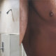 SlipperyJoe shirtless muscular man sixpack abs fit physique locker room showers artistic public bathroom beige tiles and mounted showerhead gay pride gifts LGBTQIA stripped down unapologetic unforgettable discipline doesn’t rinse off