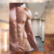 SlipperyJoe shirtless muscular man sixpack abs fit physique locker room showers artistic public bathroom beige tiles and mounted showerhead gay pride gifts LGBTQIA stripped down unapologetic unforgettable discipline doesn’t rinse off