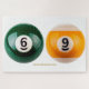 SlipperyJoe's 69 hard pool table two billiard balls funny idea shiny solid green ball striped yellow white striped white circle ball number six number nine LGBTQIA artistic gay pride gifts American-style eight-ball and nine-ball durability resistance impact scratches phenolic resin made