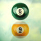 SlipperyJoe's 69 hard pool table two billiard balls funny idea shiny solid green ball striped yellow white striped white circle ball number six number nine LGBTQIA artistic gay pride gifts American-style eight-ball and nine-ball durability resistance impact scratches phenolic resin made