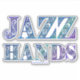 SlipperyJoe's artistic Jazz Hands vibrant colours dance move gesture curly fancy ornate letters Broadway musicals vaudeville choreography gay pride gifts LGBTQIA visually striking interesting intricate swirling patterns blue green purple gradient mix fingers spread apart exuberant performances