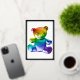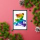 SlipperyJoe's brushed metal teddy bear smooth gradient rainbow effect round head ears circular eyes reds oranges greens blues purples arms and legs stretched outward artistic cheerful little smile LGBTQIA gay pride gifts overall vibe whimsical modern striking piece digital pop art radiates playful energy