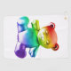 SlipperyJoe's brushed metal teddy bear smooth gradient rainbow effect round head ears circular eyes reds oranges greens blues purples arms and legs stretched outward artistic cheerful little smile LGBTQIA gay pride gifts overall vibe whimsical modern striking piece digital pop art radiates playful energy