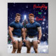SlipperyJoe's decorated snow-covered Christmas trees holiday colourful vibrant string lights twins muscular men chest sexy abs six-pack stomach snowy festive beautiful winter wonderland falling white snowflakes LGBTQIA artistic tight navy blue shirts gay pride gifts white briefs Naughty Nice lights ornaments red green letters