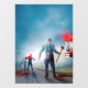 SlipperyJoe's happy Halloween glowing eyes zombies outbreak quarantine sign male survivor figure stands foreground infection gas mask aeroplanes ground splattered bloodstains mysterious figures post-apocalyptic zombie-infected world armed with sledgehammer for combat artistic dark stormy sky desolate landscape LGBTQIA gay pride gifts