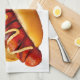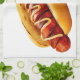 SlipperyJoe's hot dog nestled soft bun vibrant yel Tea Towel