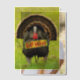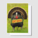 SlipperyJoe's humorous clever Thanksgiving theme turkey standing grassy field sign hanging around its neck eat ham red green letters lighthearted festive tongue-in-cheek zero gobbles given displaying full plumage artistic gay pride gifts LGBTQIA