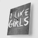 SlipperyJoe's I Like Girls dirty chalkboard dark textured background bold distressed white lettering stark gritty aesthetic dust residue dull greyish haze distracting smudges erasing leaving streaks LGBTQIA gay pride gifts artistic raw expressive rebellious feel cheeky straightforward honesty