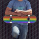 SlipperyJoe's Inclusive gay pride flag textured ru Skateboard