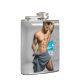 SlipperyJoe's Man towel broken white brick wall ba Hip Flask