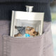 SlipperyJoe's Man towel broken white brick wall ba Hip Flask