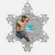 SlipperyJoe's Man towel broken white brick wall ba Snowflake Pewter Christmas Ornament