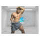 SlipperyJoe's Man towel broken white brick wall bare chest torso muscles cracked floor broken brick wall tropical beach beard dreamy artistic gay pride gifts LGBTQIA grey brown white blue shades unique visual effect