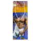 SlipperyJoe's muscular man bulge six-pack gym training facility white athletic singlet blue red ropes hanging from ceiling pulling spandex away from body gay pride gifts LGBTQIA artistic wrestling mat yellow circles padded walls line the room fluorescent lights cast stark glow