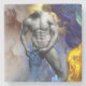 SlipperyJoe's muscular man physique steamy shirtless sixpack abs blue jeans colourful cloud surreal imagination vibrant colour explosions surrounding him artistic gay pride gifts LGBTQIA strength vitality inspiration digital art piece