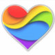 SlipperyJoe's pride heart curves shape 3-D three-dimensional look rainbow celebrates love artistic visually appealing colours gay pride gifts LGBTQIA red orange yellow green blue purple smooth wave-like appearance vibrant dynamic movement graphic design