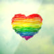 SlipperyJoe's pride scribbled heart shape drawing rainbow love inclusivity message transcends boundaries gradient rainbow colours vibrant colourful illustration gay pride gifts artistic LGBTQIA uneven lines radiating outwards red orange yellow green blue purple depth dimension
