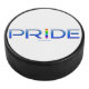 SlipperyJoe's pride word metallic letters radiates Hockey Puck
