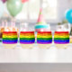 SlipperyJoe's rainbow pride colours glossy liquid Stemless Wine Glass