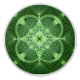 SlipperyJoe's Saint Patrick's Day glowing four leaf clover shape luminous almost kaleidoscopic appearance Irish LGBTQIA gifts symmetrical mandala like shamrock pattern deep emerald forest lime tones geometric grid interlocking circles diamonds rich vibrant green abstract design artistic layered translucent petals centre radiates outward intricate fractals gradients fine linework add texture modern ornate depth dimension festive elegant visually hypnotic