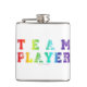 SlipperyJoe's Team Player words gradient rainbow c Hip Flask