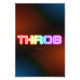 SlipperyJoe's throb rainbow-like gradient thick capitalised letters dotted texture filling blurred blue orange red hues swirls intensifying visual impact neon dreamscape ambient lighting psychedelic neon signage art gay pride gifts edgy branding LGBTQIA hypnotic design artistic charged word choice