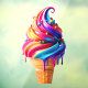 SlipperyJoe's vibrant ice cream cone food classic waffle cone base dessert exudes energy happiness swirling mix of rainbow hues delicious various colours sprinkles glossy slightly melted appearance deliciously indulgent texture gay pride gifts LGBTQIA bright pink lively orange sunny yellow rich blue deep purple artistic cheerful inviting vibe