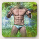 SlipperyJoe's white muscular sexy man speedo black Coaster