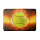 SlipperyJoe's yellow softball fireball flames rasp Bath Mat