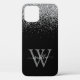 Modern iPhone 12 case in black and sliver glitter, elegantly adorned with your script monogram, first name and initial.