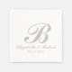 Custom personalised monogram paper napkins for weddings and related events. Personalise this elegant wedding accessory with the bride and groom names, wedding date, initial or anything you like. Simple, elegant Black script text on white background.