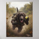 The Field Fetch Specialist is on the front lines of fun, diving behind cover in full camouflage gear. One paw grips a grenade, the other holds a slobbery tennis ball—because no mission is complete without a game of fetch. His focused eyes and wagging tail say it all: playtime is serious business. Ideal for fans of military humour, loyal labs, and action-packed dog adventures.