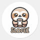 Slofee! Cute Coffee Drinking Sloth Pun Cartoon Classic Round Sticker