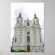 Funky Slonim Belarus St. Andrew's Church Architecture City Street People View / Cityscape Poster to add to your travel memorabilia collection. A cool present / gift idea for all who love custom design items, positive vibes, travel, remote destinations, history, is of a Belarusian / Jewish Descent etc.