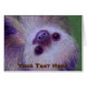 A colour pencil drawing of an adorable, smiling, two toed Sloth adorns this greeting card.