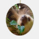 Ornament with an adorable baby sloth slowly making his way along the branches of the jungle canopy on one side, and a young capybara fast asleep in a bed of straw on the other side.
