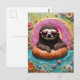 Sloth Chilling in a Floating Doughnut Funny Collag Postcard