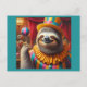 Introducing the Sloth Clown! With a colourful toy in hand and dressed in a vibrant yellow and blue striped top hat and ruffled collar, our sloth is ready to bring joy and laughter to your day. Set against the backdrop of a lively circus tent, this unique character adds a touch of whimsy to any occasion. Whether you’re looking for a fun addition to your collection or a one-of-a-kind gift, the Sloth Clown is sure to please. Step right up and join the fun with our Sloth Clown!