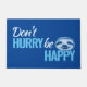 Cute whimsy sloth in blue sleepy face art slogan don't hurry be happy doormat. Other matching sloth items available. Design and sloth face art taken from an original watercolour painting by Sarah Trett for www.mylittleeden.com