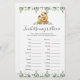Sloth themed baby shower finish mummy's phrase game card features a watercolor sloth illustration and watercolor greenery eucalyptus garland and elegant handwritten style font.