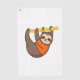 Sloth Hanging on Branch with Orange Golf Towel