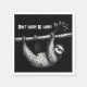 Black and white sketch drawing of a sloth hanging from a tree branch.