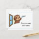 A cute sloth is sending out a paper aeroplane with a note inside out their window to whoever needs it! Text on the front can be personalised.