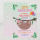 Sloth Party Birthday Let's Hang Out Pink Invitation
