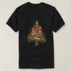 I give wanted to give this a 4 instead of a 5 because these Basic DARK T0shirts run unexpectedly SLIM or Narrow. Which is great if you do not have a potbelly, but I have a paunch. It isn't the shirt's fault that I've got a beer belly. The design and shirt itself is a quality cotton shirt. The color is more of a deep purple, but still a very pretty color. The Basic DARK T-shirts run a bit SLIMMER than the Basic Ts. The neck is a fraction narrower (or seems to be narrower) also. I'm a paunchy middle-aged woman and my neck is 12 inches (31cm) thick and the neckline fell about the same as in the photo of the man, and I had the desire to tug it a bit. So if you're a thick necked man or like loose shirts, be aware these are slimmer shirts. Once I get rid of my lockdown paunch it'll look great. The shirt washed well in cold water with no apparent bleeding. We don't have a dryer, so it hung dry. Did not shrink. Love the colors and the design. The design looks smaller on my shirt than it does on the model on-line. But still, it looks good on the shirt. The printing looks as it does on the model, just the size seems fractionally smaller. Washed garment in cold water, hung dry and design appeared unaffected.