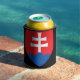 The coat of arms of Slovakia consists of a red (gules) shield, in early Gothic style, charged with a silver (argent) double cross standing on the middle peak of a dark blue mountain consisting of three peaks. Extremities of the cross are amplified, and its ends are concaved. The double cross is a symbol of its Christian faith and the hills represent three symbolic mountain ranges: Tatra, Fatra (made up of the Veľká Fatra and Malá Fatra ranges), and Mátra (the last one is in northern Hungary).